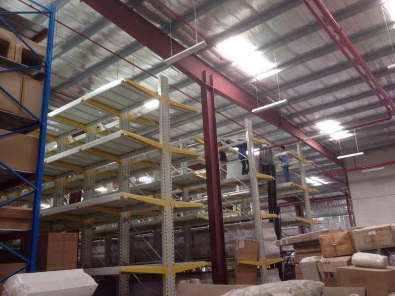 懸臂是屬于倉儲貨架類別中的一類,采用專用型材立柱,配高強度懸臂,適用于存放各種長形物料、環型物料、板材和不規則物料等。其前伸的懸臂可以是單面或雙面,具有結構輕、載重能力好的特點,單臂承重可達1000kg.特別加固的立柱結構,可以承受2000~3000kg壓力。設計背拉增加貨架整體穩定性,安裝簡易,配件齊全。組合式結構,專用型材立柱,設計背拉增加穩定性,配高強度懸臂(臂可以為單面或雙面),具結構輕巧、載重能力好、空間利用率高;加了擱板后,特別適合空間小,高度低的庫房,管理方便,視野寬闊,與普通擱板式貨架相比,利用率更高;根據承載能力可分為輕量型、中量型、重量型三種。