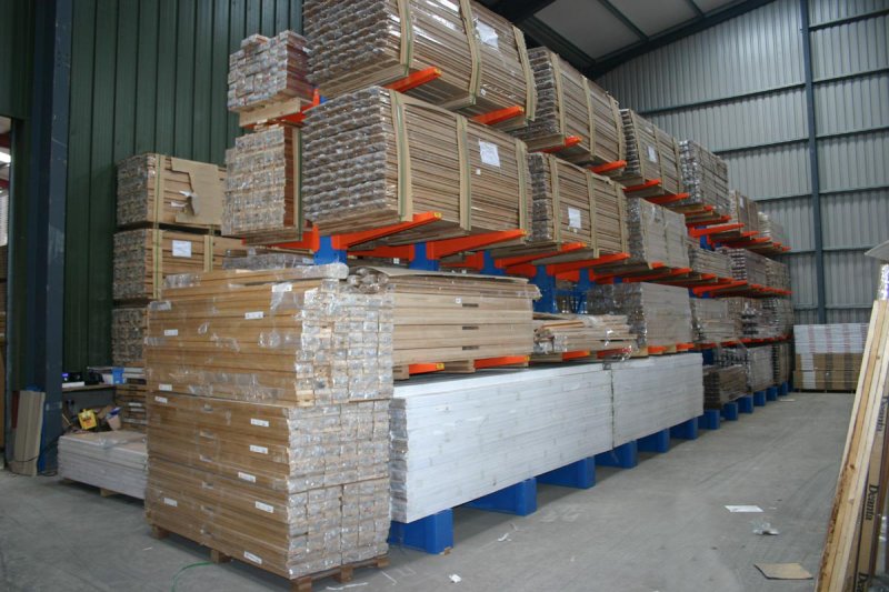 放置木材和建材產品的懸臂貨架。