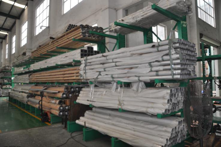 存放鋼制管件或者鋁制型材等,產品本身的長度一般為6m。輕型懸臂貨架和中型懸臂貨架是人工存放的貨架系統。通道尺寸1000-1500mm。高度一般為2m。在配套叉車使用后,高度可以做到5-12m。通道尺寸為2800-3000mm。需要使用專業叉車操作,這類貨架由于高度增加,和本身防止叉車作業風險的保護。會采用重型懸臂貨架要求設計。懸臂可以是單面或雙面,懸臂式貨架具有結構穩定,載重能力好、空間利用率高等特點。懸臂式貨架多用于機械制造行業和建材超市等。加了擱板后,特別適合空間小,高度低的庫房,管理方便,視野寬闊,利用率比普通貨架更高。懸臂式貨架是在傳統式貨架支柱上裝設外懸臂而成,是一種長形物專用的貨架。