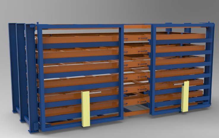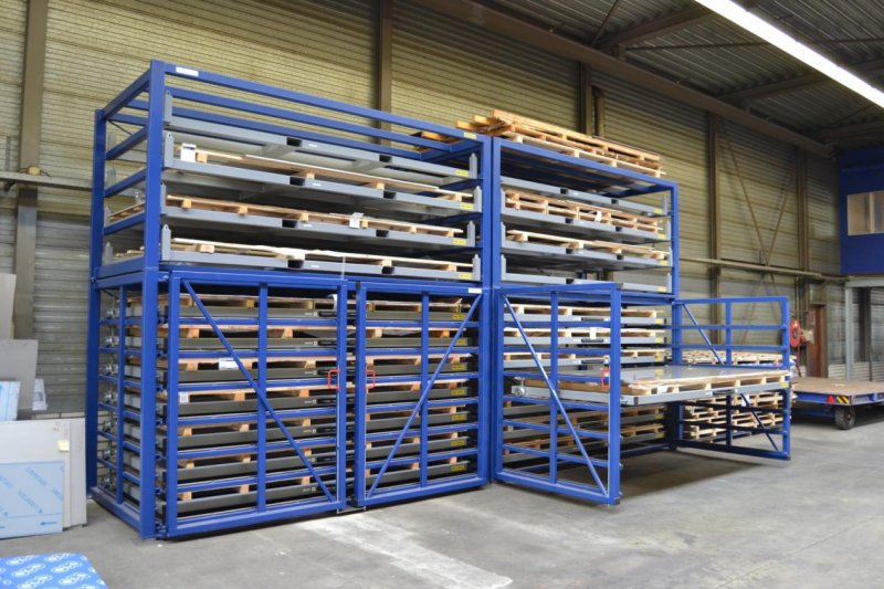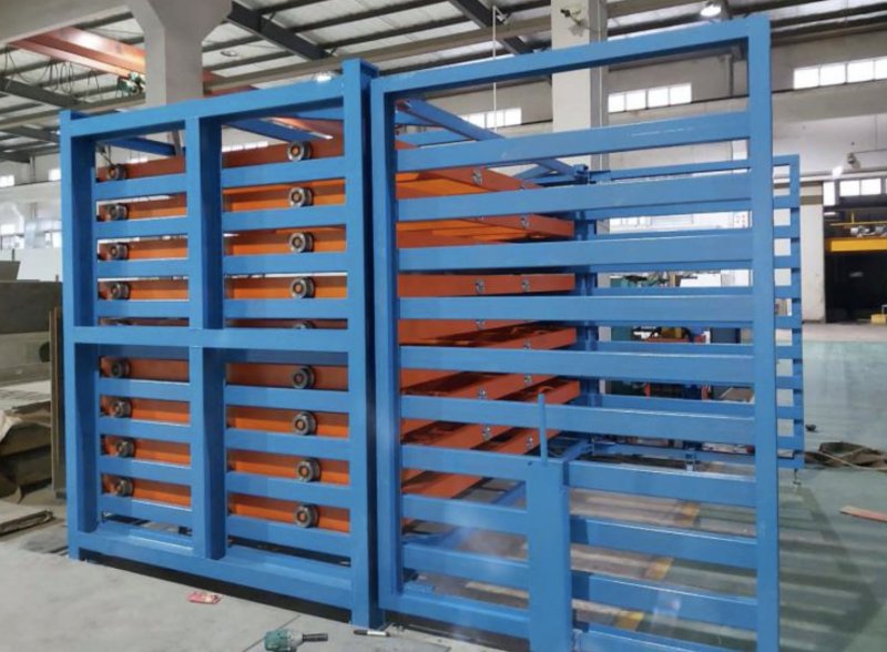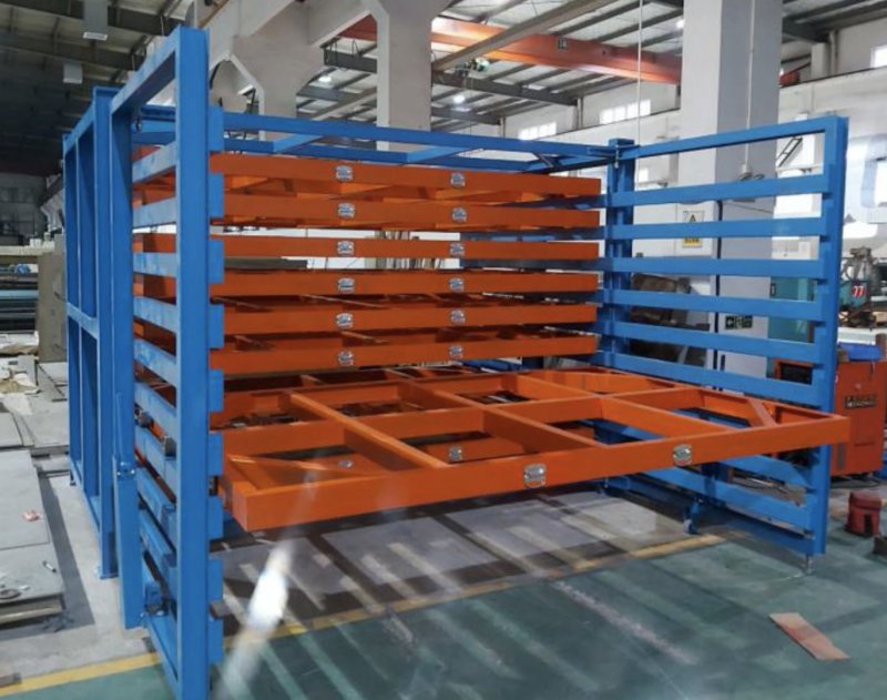 金屬板材存放貨架 板材堆放架工程項目 節。汗澥〈罅繌S房空間,抽屜式結構,可以15層存放,占地空間小,存儲量高。鋼板可以分層分類的存放在同一組貨架上,幾十種規格尺寸材質的鋼板存放在貨架上,瞬間廠房變得寬敞 整齊 明亮,抽屜式結構不需要叉車不需要工業巷道。天車存放節省人力,單人可以完成所有的操作,存取速度快,節省時間。 安全:鋼板存放在地面上占用的空間大,各種規格的鋼板都堆放在一起雜亂無章,容易磕磕絆絆,上面的鋼板還容易滑動,存在安全隱患,鋼板比較鋒利,人工存取還容易劃傷操作者,存在人員安全隱患。鋼板存放架還可以保護板材,防止鋼板在運輸中帶來損耗,特別是貴重金屬板材防止劃傷 刮傷 卷邊等情況的發生。 方便:鋼板存放架采用抽屜式結構,每層抽屜單獨拉出,方便鋼板的存取,特別是中間的鋼板也可以直接存放,不受上層或下層鋼板抽屜的影響,讓存取使用更方便。抽屜高標準拉出,操作方便。 快捷:鋼板存放架使用天車存放鋼板,存取速度快捷,鋼板直接存取,幾十種鋼板擺放在不同的抽屜里,貨物一名了然,不用浪費過多的時間,快速的存放所有使用的鋼板,不用反復整理挪動,讓廠房空間迅速寬敞起來。